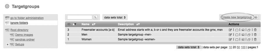In EMMI, you are offered the option to sort the subscribers in target groups. There are many possibilities for organization – such as sex, age or interests. In order to simplify the beginning, 3 target groups are already defined in EMMI.