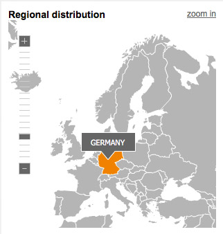 EMMI generated based on the IP addresses of subscribers an overview of the 'local distribution'. If openings were counted in one country, this will be color coded. By clicking on the country a magnified view appears and cities become visible as points. The larger the dots, the more Openings were counted in this city. Move the cursor over an item, you see the Openings to the location. The data relate to the unique Openings (unique).